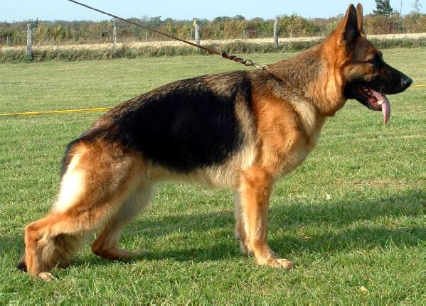 Groß, typ- und ausdrucksvoll, gutes Verhältnis und guter Gesamtaufbau. Korrekte Winkelungen, leicht abschüssige Kruppe. Brust gut entwickelt, korrekte Schrittfolge, regelmäßige, weit ausgreifende, kraftvolle Bewegung. Sicheres Wesen, TSB ausgeprägt; läßt ab.