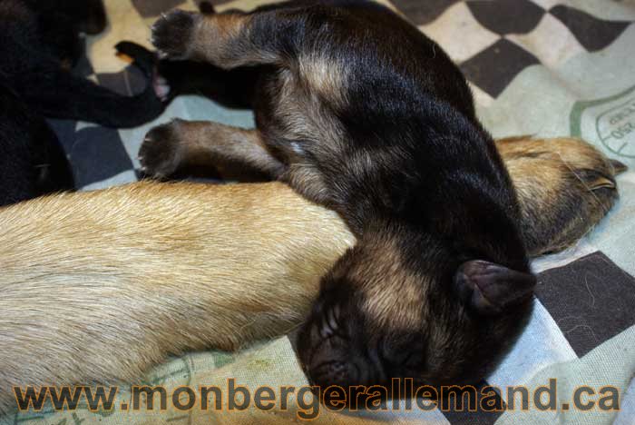 Chiot Portee septembre 2010 - berger allemandVoici que la petite dernière est adopté! Ce qui termine la portée de cet automne, 7 autres merveilleux chiots ont rejoint 7Chiots Berger allemand 2010 portée Septembre 2010 merveilleuses familles et autant de nouveau maitre avide d'aider ce petit chiot a devenir grand, petit et grand vont participer a l'éducation de ces chiots qui débute leurs vie dans notre monde, espérons a tous une longue vie en santé ! Les chiots vont nous manquer, Bonne chance avec vos nouvelles familles, vous serez surement de merveilleux berger allemand j'en suis certain ! Vous êtes tous magnifique, tous avec un superbe tempérament, racé avec de magnifique robe, vous représentez dignement l'image originel de la plus belle race de chien au monde,  les Berger Allemand !